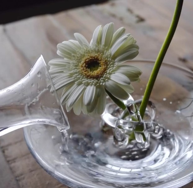 水磨石底座水滴玻璃花瓶