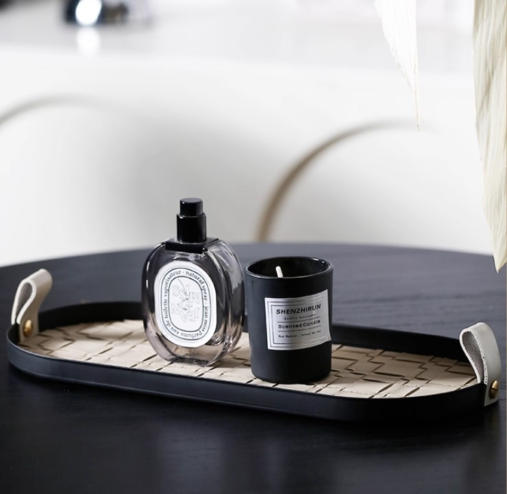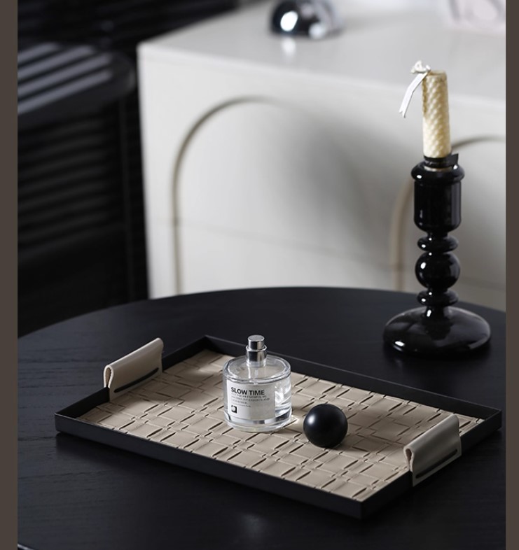 | 米色編織皮革纹金屬托盤 |