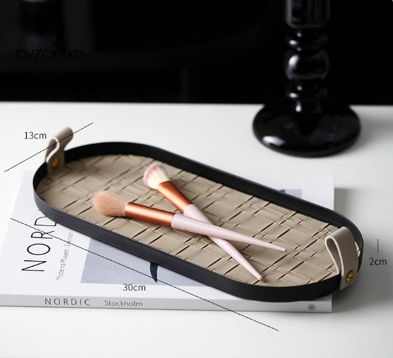 米色編織皮革纹金屬托盤